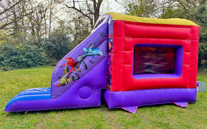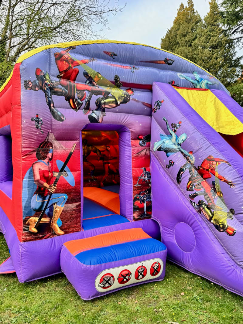 Action Hero themed Slide Bouncer Bouncy Castle with Front Slide