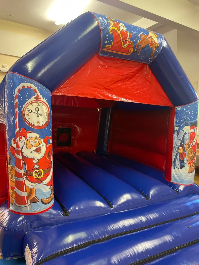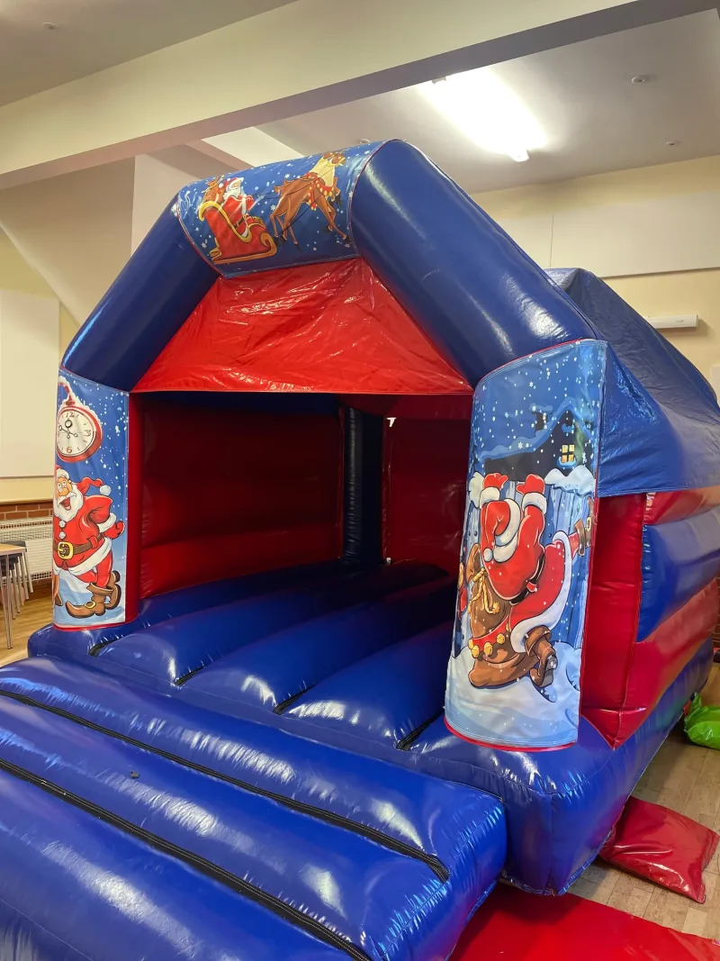 GoFor Event Hire - Christmas Theme A Frame Bouncy Castle Hire (Red and Blue) in Letchworth & Surrounding Areas